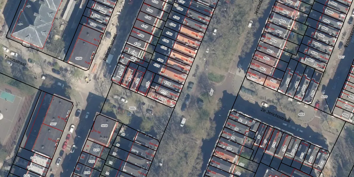 Het perceel waarop Jericholaan 61-A staat heeft een oppervlakte van 87 m². Dit is een klein perceel. De perceeloppervlakte wordt geregistreerd door het Kadaster. Gedetailleerde informatie over de maten van dit perceel kunt u vinden in het rapport Kadastrale kaart met maatvoering van Jericholaan 61-A.