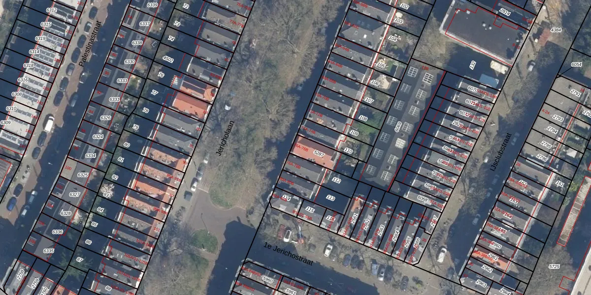 Jericholaan 76-A is gelegen op kadastraal perceel KLG00G5287. Deze kadastrale aanduiding is uniek en wordt gebruikt door het Kadaster om eigendomsrechten en andere zakelijke rechten vast te leggen. Het perceel maakt onderdeel uit van de kadastrale gemeente Kralingen.