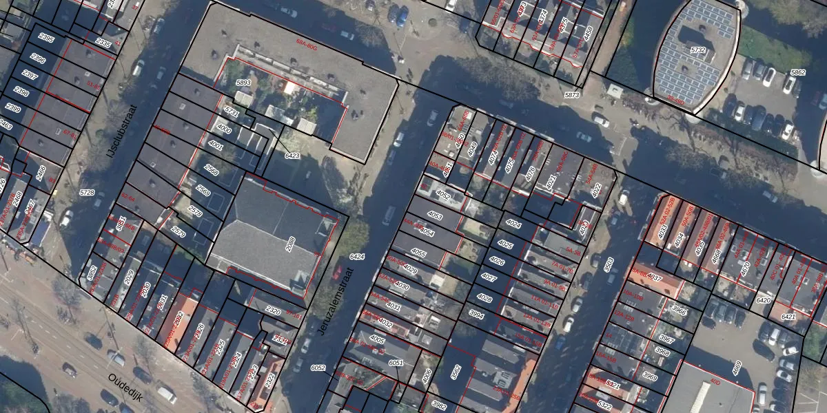 Jeruzalemstraat 44-B is gelegen op kadastraal perceel KLG00G4053. Deze kadastrale aanduiding is uniek en wordt gebruikt door het Kadaster om eigendomsrechten en andere zakelijke rechten vast te leggen. Het perceel maakt onderdeel uit van de kadastrale gemeente Kralingen.