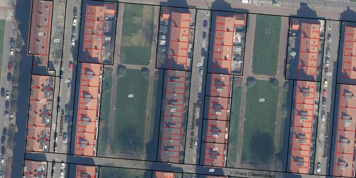Johan de Meesterstraat 11-B is gelegen op kadastraal perceel RTD04AE440. Deze kadastrale aanduiding is uniek en wordt gebruikt door het Kadaster om eigendomsrechten en andere zakelijke rechten vast te leggen. Het perceel maakt onderdeel uit van de kadastrale gemeente Rotterdam.