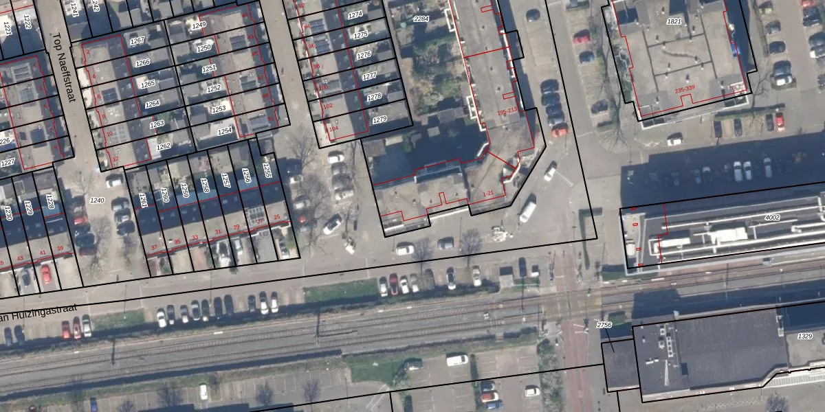 Johan Huizingastraat 21 is gelegen op kadastraal perceel RTD13BA2284. Deze kadastrale aanduiding is uniek en wordt gebruikt door het Kadaster om eigendomsrechten en andere zakelijke rechten vast te leggen. Het perceel maakt onderdeel uit van de kadastrale gemeente Rotterdam.