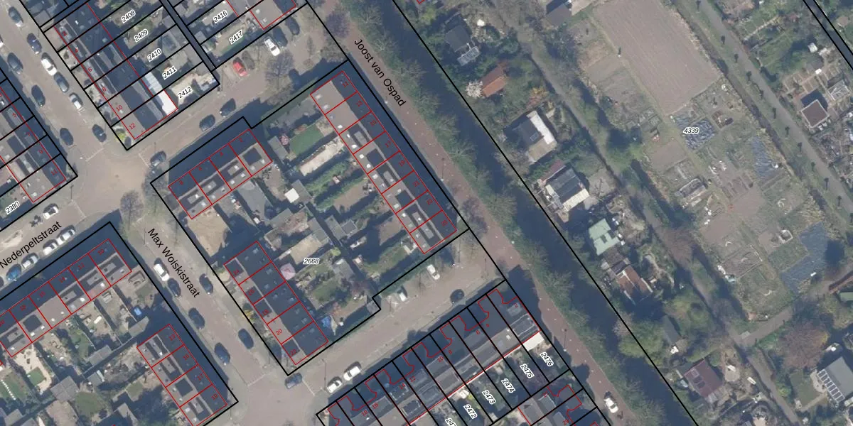 Het perceel waarop Joost van Ospad 23 staat heeft een oppervlakte van 2845 m². Dit is een zeer groot perceel. De perceeloppervlakte wordt geregistreerd door het Kadaster. Gedetailleerde informatie over de maten van dit perceel kunt u vinden in het rapport Kadastrale kaart met maatvoering van Joost van Ospad 23.