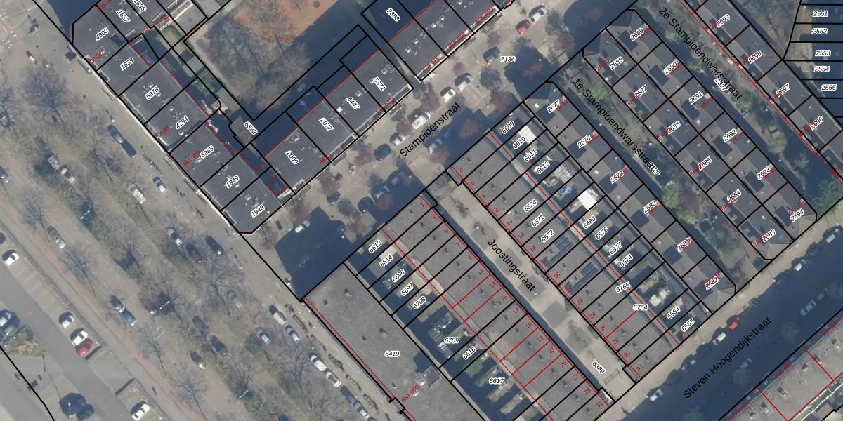 Joostingstraat 1 is gelegen op kadastraal perceel RTD05Q6613. Deze kadastrale aanduiding is uniek en wordt gebruikt door het Kadaster om eigendomsrechten en andere zakelijke rechten vast te leggen. Het perceel maakt onderdeel uit van de kadastrale gemeente Rotterdam.