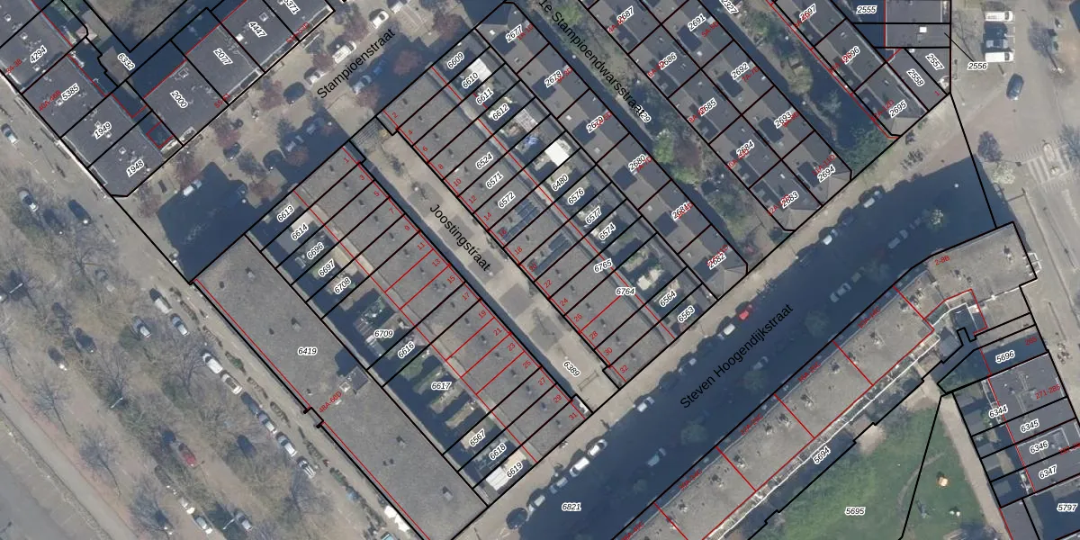 Het perceel waarop Joostingstraat 20 staat heeft een oppervlakte van 100 m². Dit is een middelgroot perceel. De perceeloppervlakte wordt geregistreerd door het Kadaster. Gedetailleerde informatie over de maten van dit perceel kunt u vinden in het rapport Kadastrale kaart met maatvoering van Joostingstraat 20.