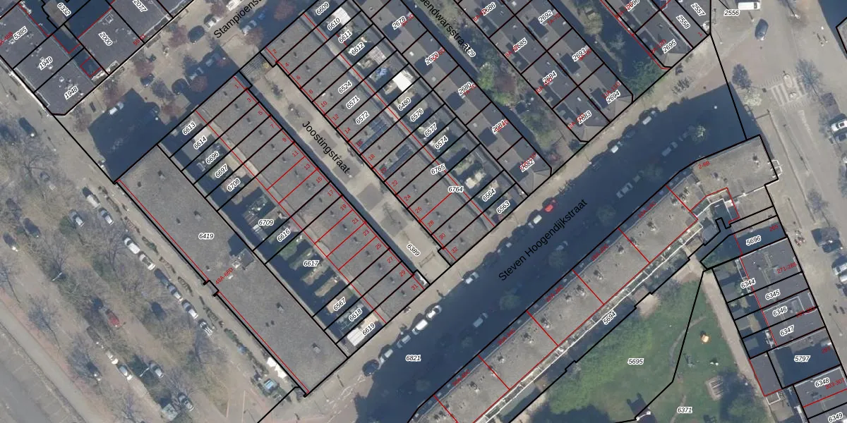 Joostingstraat 26 is gelegen op kadastraal perceel RTD05Q6764. Deze kadastrale aanduiding is uniek en wordt gebruikt door het Kadaster om eigendomsrechten en andere zakelijke rechten vast te leggen. Het perceel maakt onderdeel uit van de kadastrale gemeente Rotterdam.