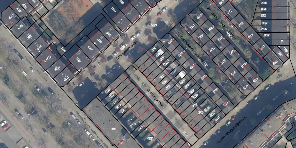 Het perceel waarop Joostingstraat 6 staat heeft een oppervlakte van 100 m². Dit is een middelgroot perceel. De perceeloppervlakte wordt geregistreerd door het Kadaster. Gedetailleerde informatie over de maten van dit perceel kunt u vinden in het rapport Kadastrale kaart met maatvoering van Joostingstraat 6.