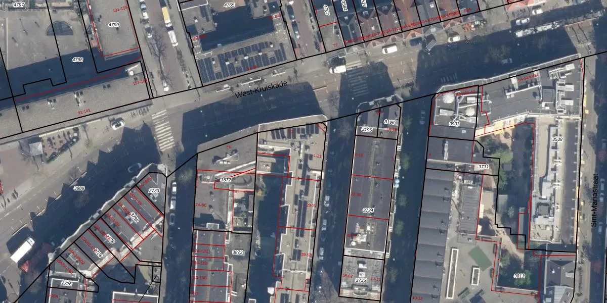 Het adres is gelegen op perceel 3862 in de sectie D en de kadastrale gemeente Delfshaven. De kadastrale aanduiding is aldus DHV00-D-3862. De gemiddelde perceeloppervlakte in de kadastrale gemeente Delfshaven is 628,82 m². Dit perceel is met zijn 2210 m² dus groter dan gemiddeld. De grootste perceeloppervlakte in de kadastrale gemeente is 22,2 ha. De kleinste oppervlakte bedraagt 0 m². Op het perceel zijn 52 adressen aanwezig. De laatste wijziging in het de Basisregistratie Kadaster (BRK) was op 12-03-2003.