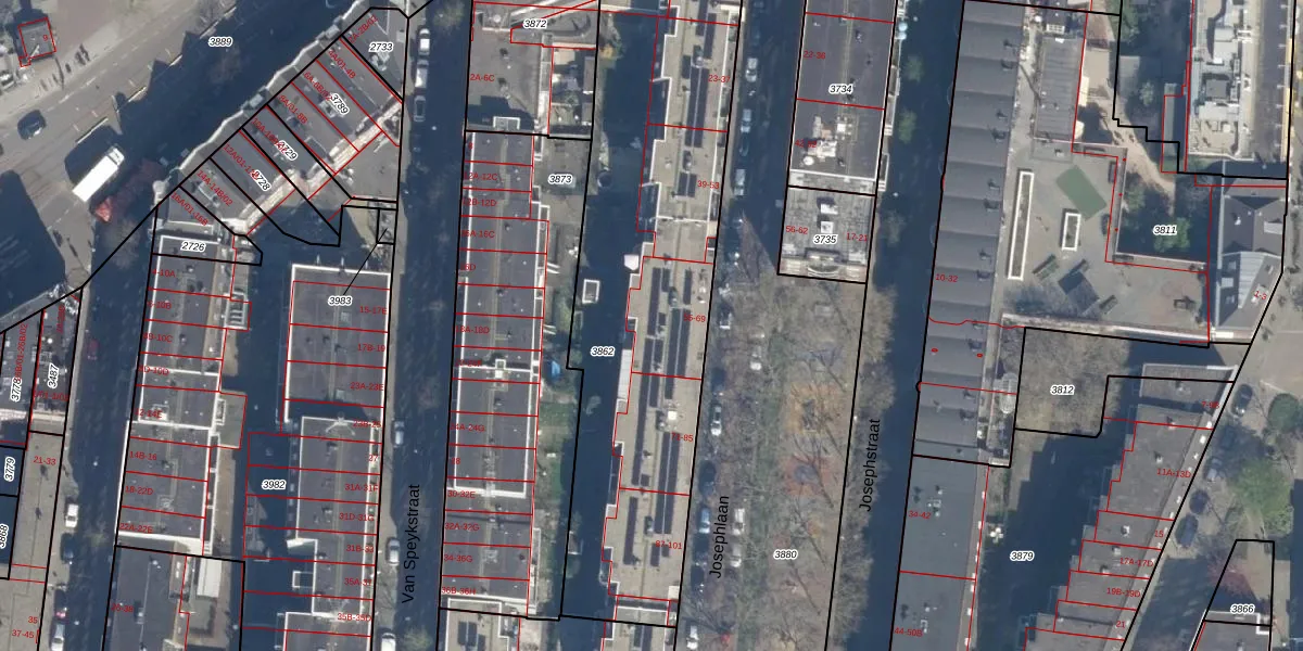 Josephlaan 59 is gelegen op kadastraal perceel DHV00D3862. Deze kadastrale aanduiding is uniek en wordt gebruikt door het Kadaster om eigendomsrechten en andere zakelijke rechten vast te leggen. Het perceel maakt onderdeel uit van de kadastrale gemeente Delfshaven.