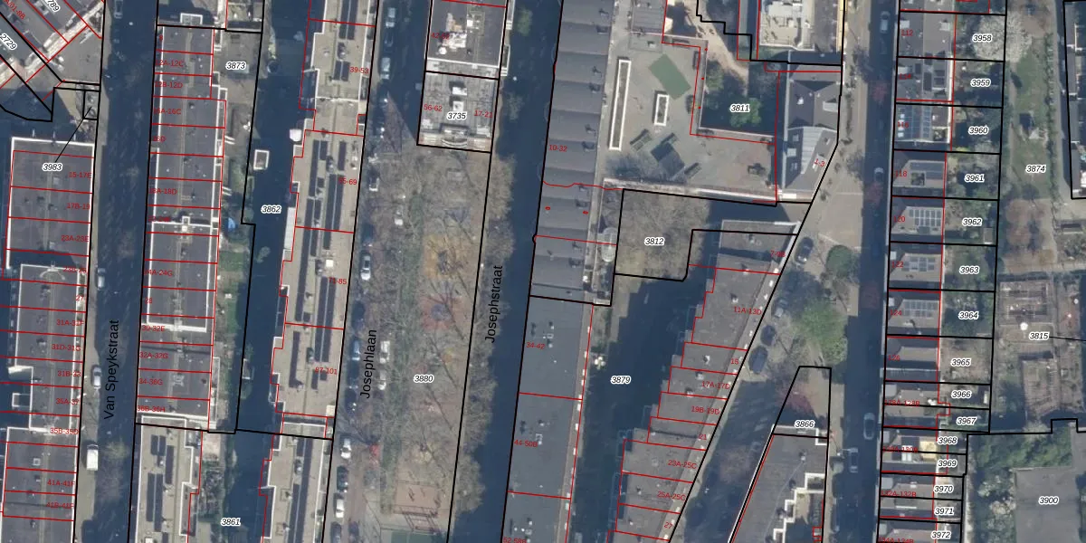 Het perceel waarop Josephstraat 28-A staat heeft een oppervlakte van 2322 m². Dit is een zeer groot perceel. De perceeloppervlakte wordt geregistreerd door het Kadaster. Gedetailleerde informatie over de maten van dit perceel kunt u vinden in het rapport Kadastrale kaart met maatvoering van Josephstraat 28-A.