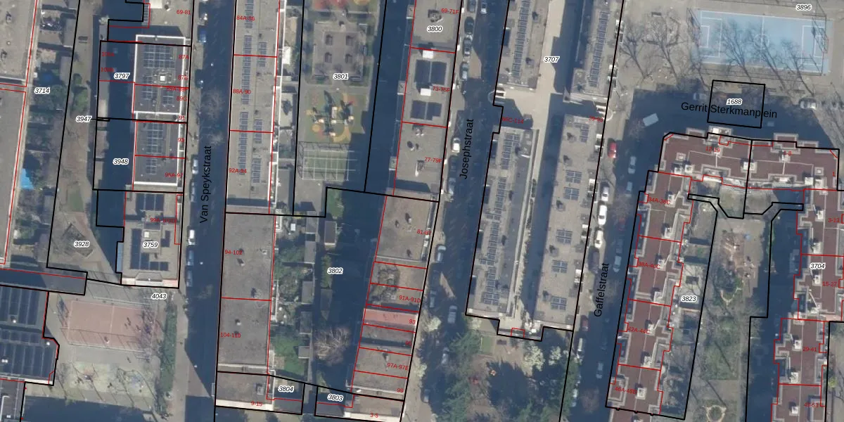 Het perceel waarop Josephstraat 81 staat heeft een oppervlakte van 2041 m². Dit is een zeer groot perceel. De perceeloppervlakte wordt geregistreerd door het Kadaster. Gedetailleerde informatie over de maten van dit perceel kunt u vinden in het rapport Kadastrale kaart met maatvoering van Josephstraat 81.