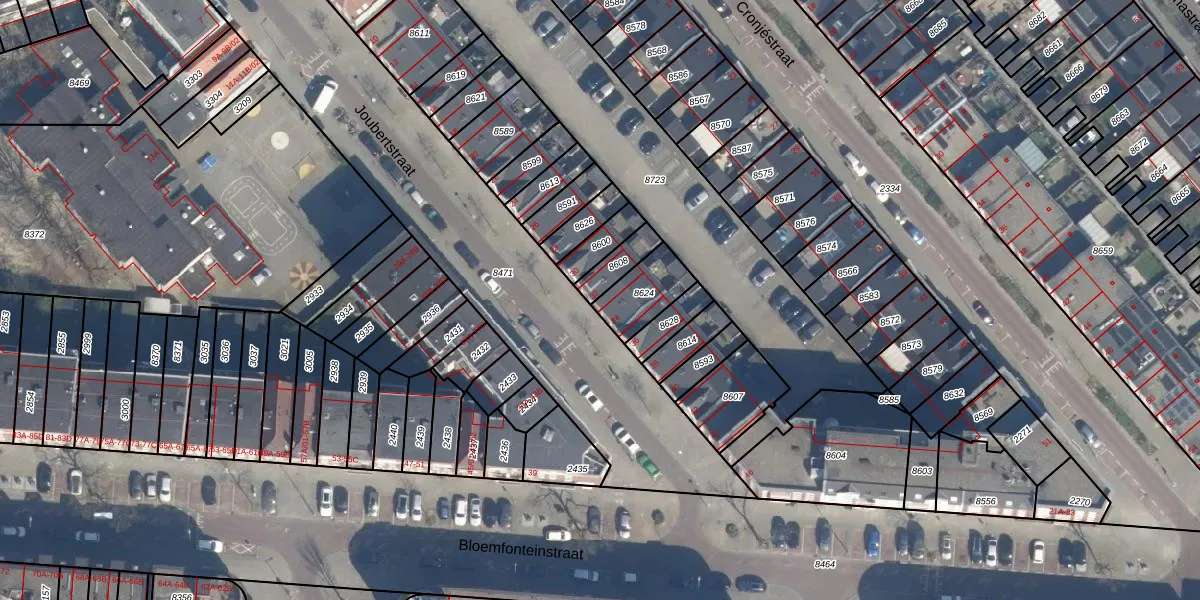 Joubertstraat 32 is gelegen op kadastraal perceel CLS00D8624. Deze kadastrale aanduiding is uniek en wordt gebruikt door het Kadaster om eigendomsrechten en andere zakelijke rechten vast te leggen. Het perceel maakt onderdeel uit van de kadastrale gemeente Charlois.