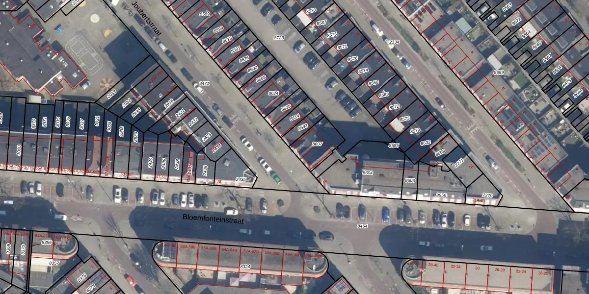 Joubertstraat 42 is gelegen op kadastraal perceel CLS00D8607. Deze kadastrale aanduiding is uniek en wordt gebruikt door het Kadaster om eigendomsrechten en andere zakelijke rechten vast te leggen. Het perceel maakt onderdeel uit van de kadastrale gemeente Charlois.