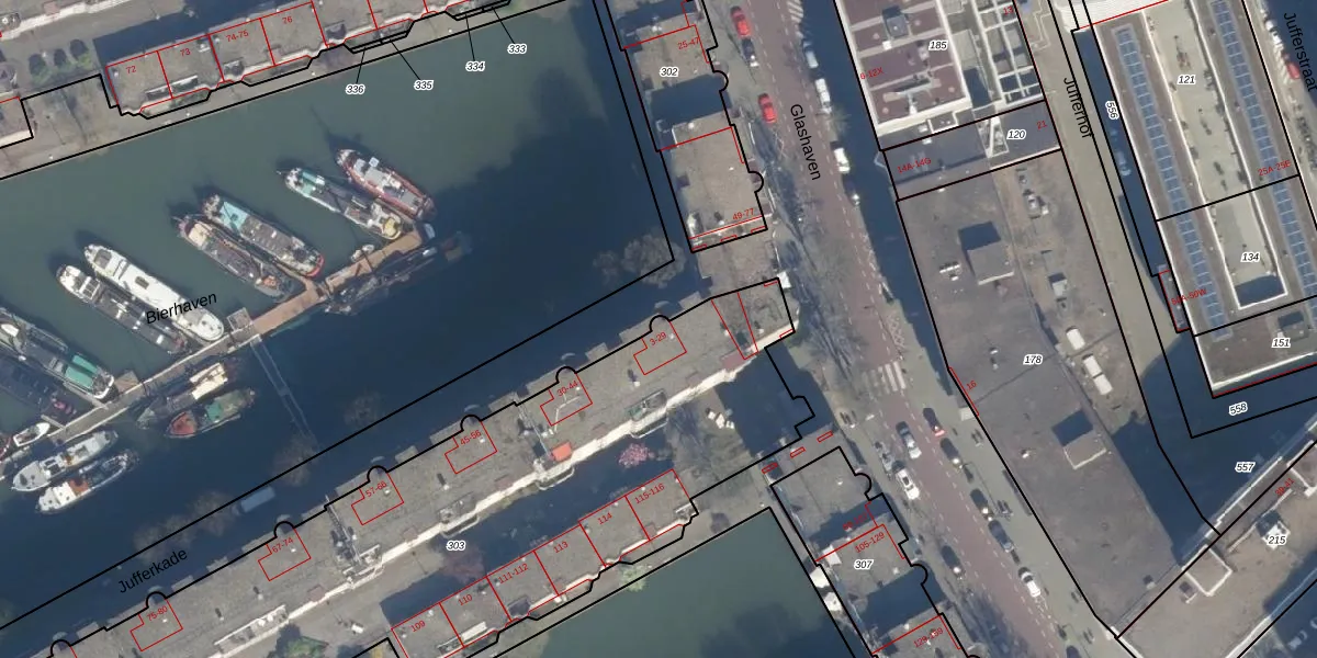 Jufferkade 21 is gelegen op kadastraal perceel RTD04AH303. Deze kadastrale aanduiding is uniek en wordt gebruikt door het Kadaster om eigendomsrechten en andere zakelijke rechten vast te leggen. Het perceel maakt onderdeel uit van de kadastrale gemeente Rotterdam.