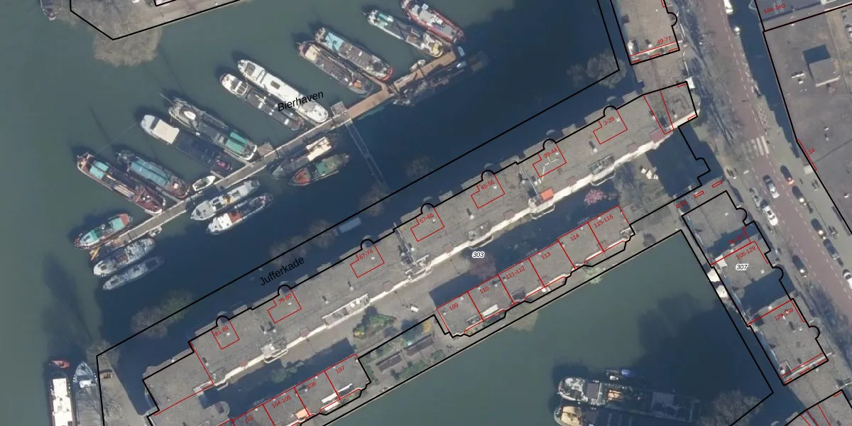 Jufferkade 60 is gelegen op kadastraal perceel RTD04AH303. Deze kadastrale aanduiding is uniek en wordt gebruikt door het Kadaster om eigendomsrechten en andere zakelijke rechten vast te leggen. Het perceel maakt onderdeel uit van de kadastrale gemeente Rotterdam.