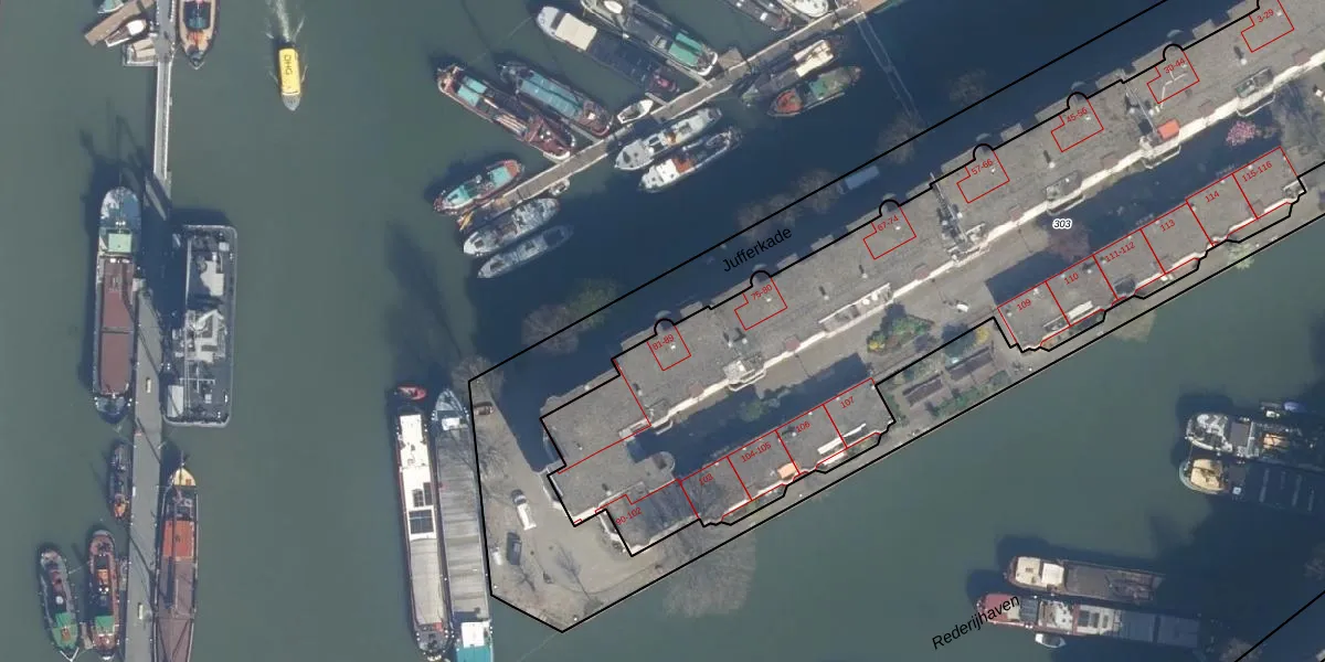 Jufferkade 82 is gelegen op kadastraal perceel RTD04AH303. Deze kadastrale aanduiding is uniek en wordt gebruikt door het Kadaster om eigendomsrechten en andere zakelijke rechten vast te leggen. Het perceel maakt onderdeel uit van de kadastrale gemeente Rotterdam.