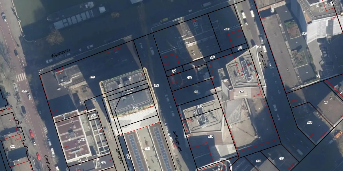 Jufferstraat 10-C is gelegen op kadastraal perceel RTD04AH156. Deze kadastrale aanduiding is uniek en wordt gebruikt door het Kadaster om eigendomsrechten en andere zakelijke rechten vast te leggen. Het perceel maakt onderdeel uit van de kadastrale gemeente Rotterdam.