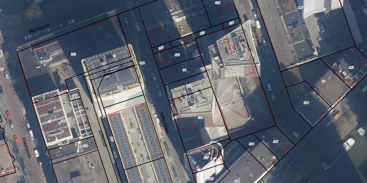Jufferstraat 106 is gelegen op kadastraal perceel RTD04AH122. Deze kadastrale aanduiding is uniek en wordt gebruikt door het Kadaster om eigendomsrechten en andere zakelijke rechten vast te leggen. Het perceel maakt onderdeel uit van de kadastrale gemeente Rotterdam.