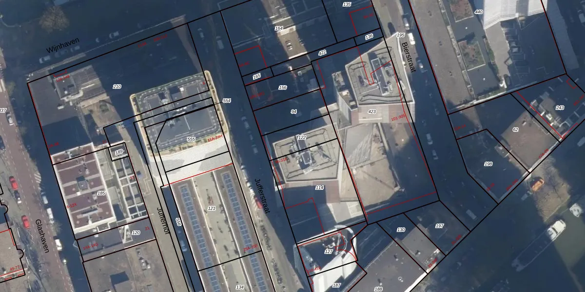 Jufferstraat 210 is gelegen op kadastraal perceel RTD04AH122. Deze kadastrale aanduiding is uniek en wordt gebruikt door het Kadaster om eigendomsrechten en andere zakelijke rechten vast te leggen. Het perceel maakt onderdeel uit van de kadastrale gemeente Rotterdam.
