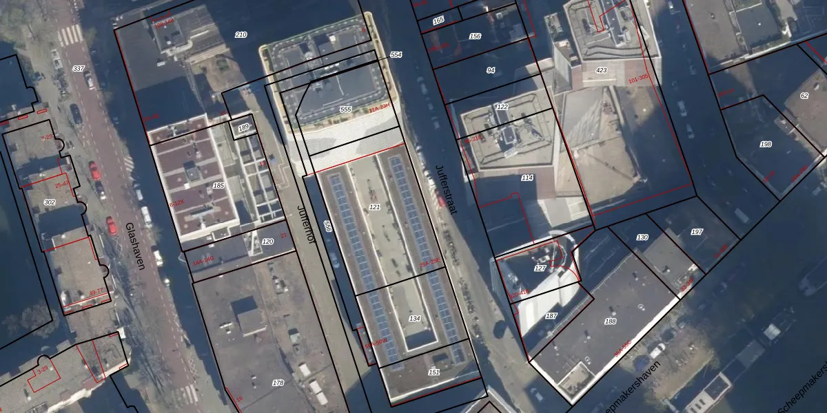 Jufferstraat 25-B is gelegen op kadastraal perceel RTD04AH121. Deze kadastrale aanduiding is uniek en wordt gebruikt door het Kadaster om eigendomsrechten en andere zakelijke rechten vast te leggen. Het perceel maakt onderdeel uit van de kadastrale gemeente Rotterdam.