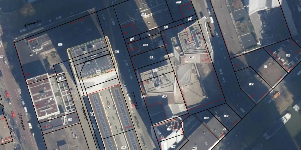 Het perceel waarop het adres ligt is RTD04-AH-122. De afkorting 'RTD04' staat voor kadastrale gemeente Rotterdam. Het perceel is kleiner dan gemiddeld in Rotterdam. Het perceel is 218 m² groot, terwijl het gemiddelde ligt op 1240,47 m². Het grootste perceel in de kadastrale gemeente is 17,3 ha. Het kleinste perceel heeft een oppervlakte van 0 m². Er zijn 105 adressen aanwezig op het perceel. De huidige grenzen van het perceel zijn digitaal in de Basisregistratie Kadaster (BRK) geregistreerd op 08-01-2003.