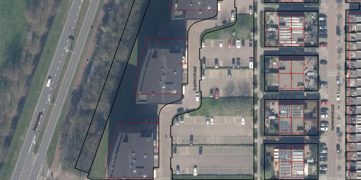 Het perceel waarop Jupiterstraat 104 staat heeft een oppervlakte van 8184 m². Dit is een zeer groot perceel. De perceeloppervlakte wordt geregistreerd door het Kadaster. Gedetailleerde informatie over de maten van dit perceel kunt u vinden in het rapport Kadastrale kaart met maatvoering van Jupiterstraat 104.