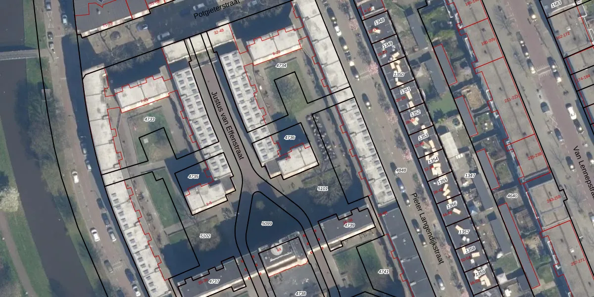 Justus van Effenstraat 2 is gelegen op kadastraal perceel RTD10Z4736. Deze kadastrale aanduiding is uniek en wordt gebruikt door het Kadaster om eigendomsrechten en andere zakelijke rechten vast te leggen. Het perceel maakt onderdeel uit van de kadastrale gemeente Rotterdam.