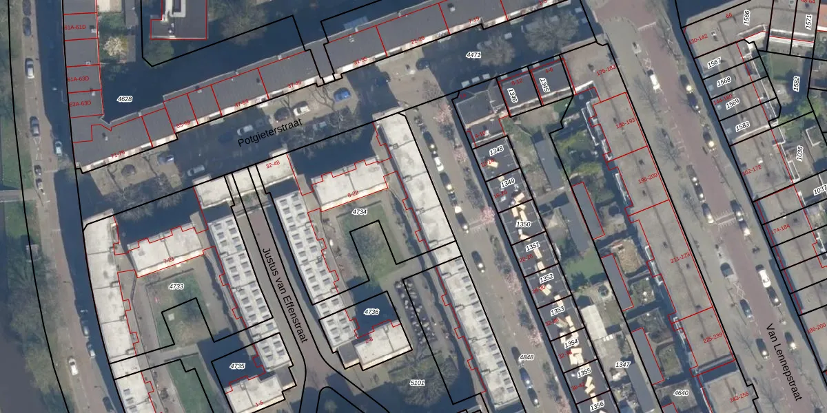 Justus van Effenstraat 20 is gelegen op kadastraal perceel RTD10Z4734. Deze kadastrale aanduiding is uniek en wordt gebruikt door het Kadaster om eigendomsrechten en andere zakelijke rechten vast te leggen. Het perceel maakt onderdeel uit van de kadastrale gemeente Rotterdam.