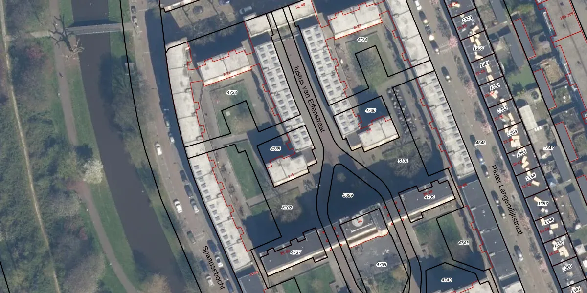 Justus van Effenstraat 5 is gelegen op kadastraal perceel RTD10Z4735. Deze kadastrale aanduiding is uniek en wordt gebruikt door het Kadaster om eigendomsrechten en andere zakelijke rechten vast te leggen. Het perceel maakt onderdeel uit van de kadastrale gemeente Rotterdam.