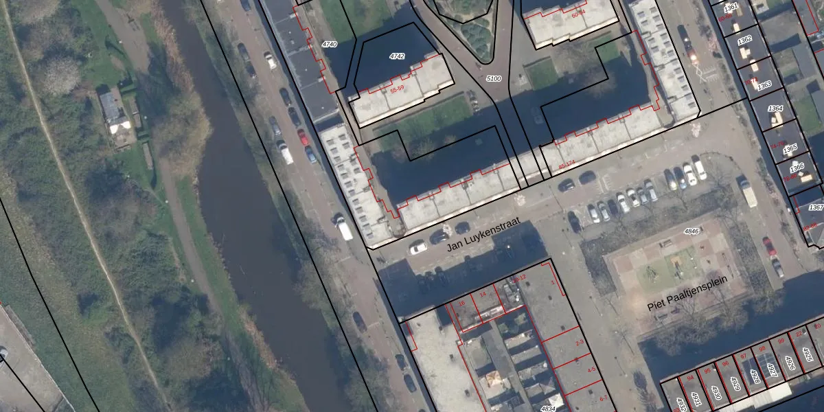 Het perceel waarop het adres ligt is RTD10-Z-4740. De afkorting 'RTD10' staat voor kadastrale gemeente Rotterdam. De oppervlakte van het perceel is 2140 m². Dat is groter dan gemiddeld in Rotterdam, waar de gemiddelde perceeloppervlakte op 1601,7 m² ligt. Het grootste perceel in de kadastrale gemeente is 30,3 ha. Het kleinste perceel heeft een oppervlakte van 0 m². Op het perceel zijn 65 adressen aanwezig. In de Basisregistratie Kadaster (BRK) werden de grenzen van het perceel geregistreerd op 16-02-2012.
