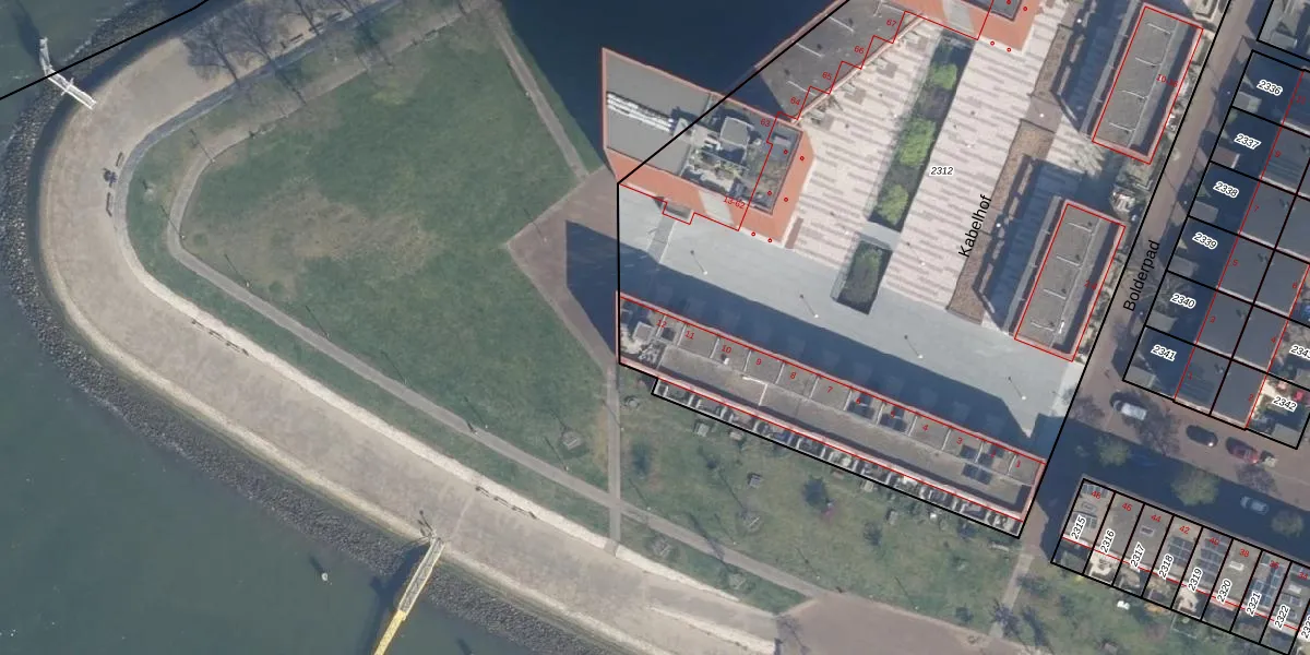 Kabelhof 12 is gelegen op kadastraal perceel RTD05P2312. Deze kadastrale aanduiding is uniek en wordt gebruikt door het Kadaster om eigendomsrechten en andere zakelijke rechten vast te leggen. Het perceel maakt onderdeel uit van de kadastrale gemeente Rotterdam.