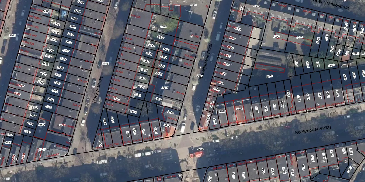 Het adres is gelegen op perceel 3907 in de sectie Y en de kadastrale gemeente Rotterdam. De kadastrale aanduiding is aldus RTD09-Y-3907. Het perceel is kleiner dan gemiddeld in Rotterdam. Het perceel is 186 m² groot, terwijl het gemiddelde ligt op 443,14 m². Het kleinste perceel in de kadastrale gemeente is 0 m² groot. De grootste perceeloppervlakte is 7,0 ha. Op het perceel zijn 5 adressen aanwezig. In de Basisregistratie Kadaster (BRK) werden de grenzen van het perceel geregistreerd op 04-12-2002.