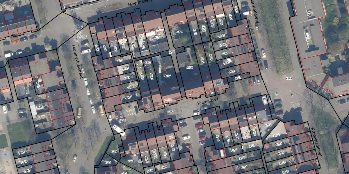 Kalmarpad 15 is gelegen op kadastraal perceel HLG03C4417. Deze kadastrale aanduiding is uniek en wordt gebruikt door het Kadaster om eigendomsrechten en andere zakelijke rechten vast te leggen. Het perceel maakt onderdeel uit van de kadastrale gemeente Hillegersberg.