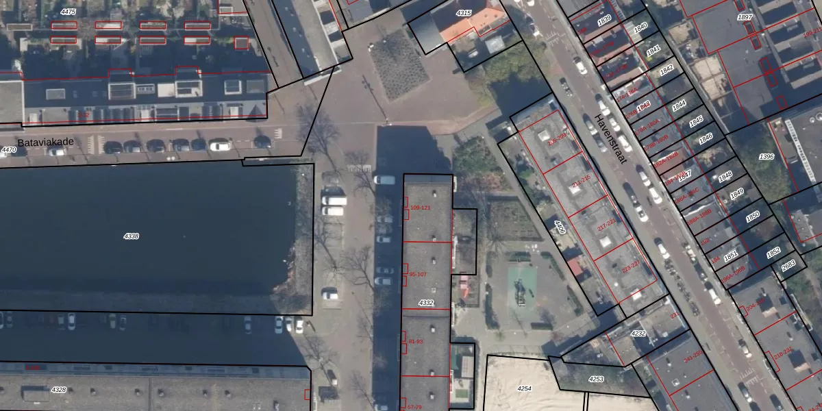 Het adres is gelegen op perceel 4332 in de sectie A en de kadastrale gemeente Delfshaven. De kadastrale aanduiding is aldus DHV00-A-4332. Het perceel is met 980 m² relatief groot. Het gemiddelde ligt in de kadastrale gemeente Delfshaven op 628,53 m². Het grootste perceel in de kadastrale gemeente is 22,2 ha. Het kleinste perceel heeft een oppervlakte van 0 m². Op het perceel liggen in totaal 28 adressen. De laatste wijziging in het de Basisregistratie Kadaster (BRK) was op 01-11-2007.