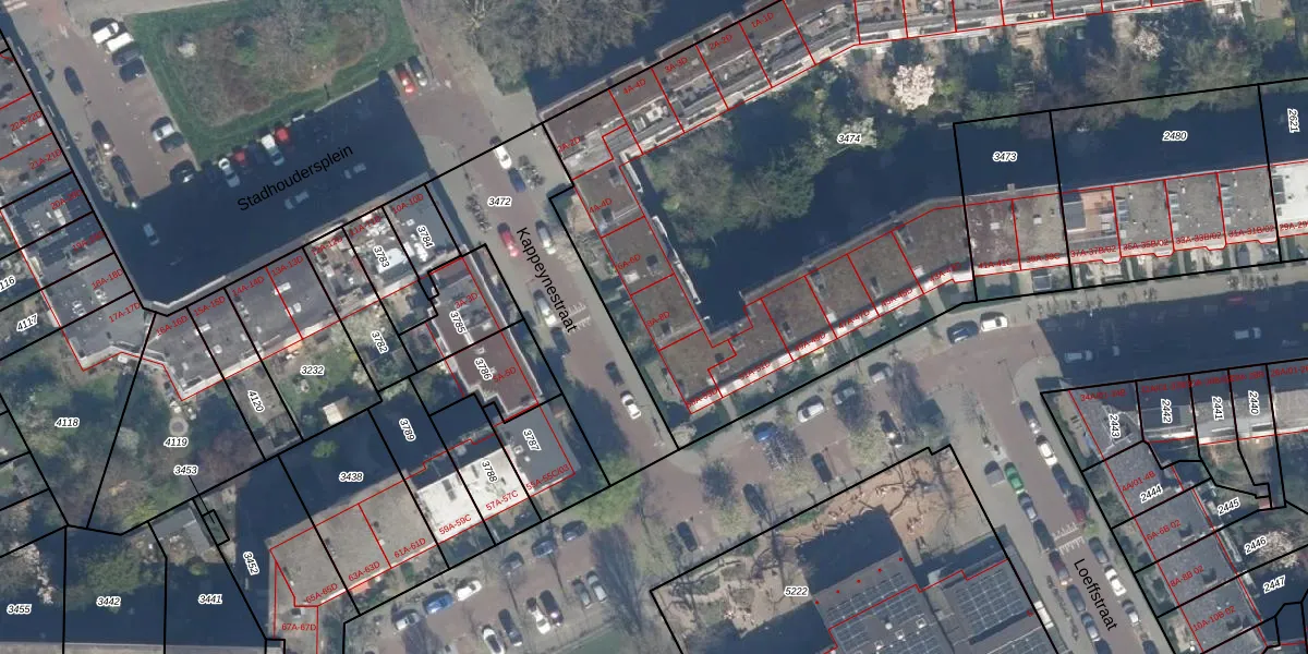 Het perceel waarop Kappeynestraat 8-A staat heeft een oppervlakte van 6054 m². Dit is een zeer groot perceel. De perceeloppervlakte wordt geregistreerd door het Kadaster. Gedetailleerde informatie over de maten van dit perceel kunt u vinden in het rapport Kadastrale kaart met maatvoering van Kappeynestraat 8-A.