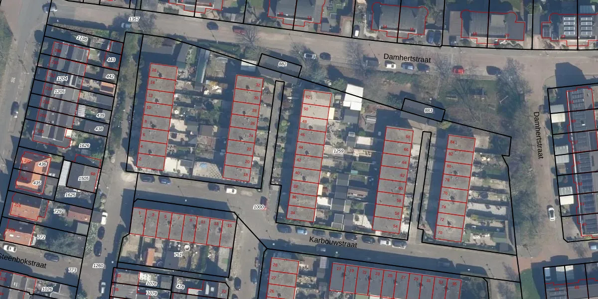 Het perceel waarop Karbouwstraat 44 staat heeft een oppervlakte van 5330 m². Dit is een zeer groot perceel. De perceeloppervlakte wordt geregistreerd door het Kadaster. Gedetailleerde informatie over de maten van dit perceel kunt u vinden in het rapport Kadastrale kaart met maatvoering van Karbouwstraat 44.