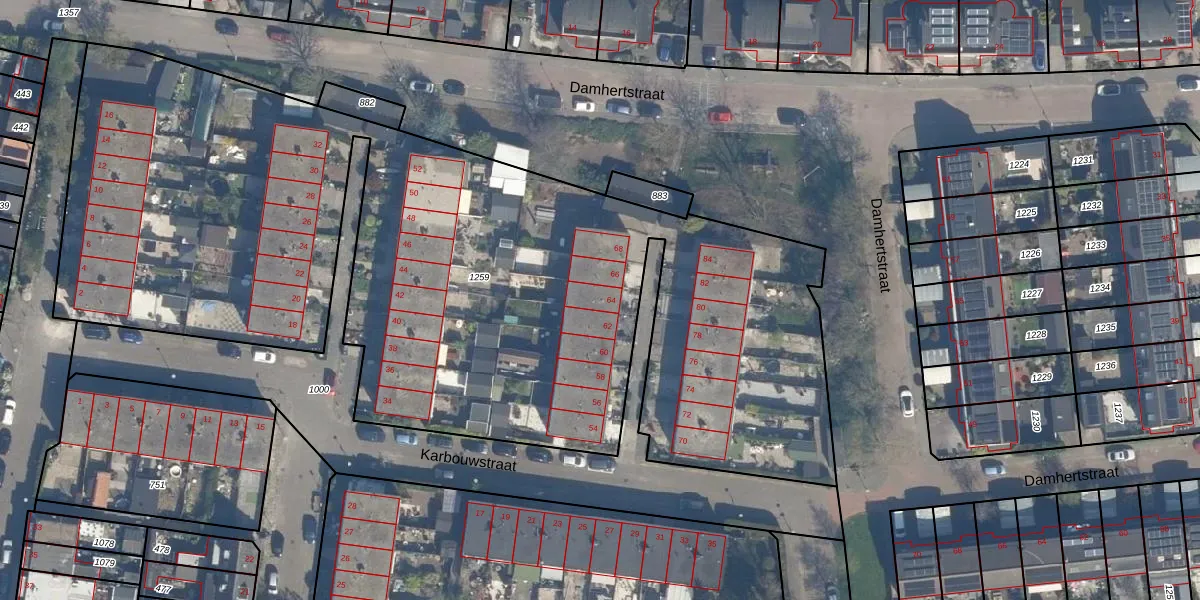 Karbouwstraat 64 is gelegen op kadastraal perceel KLG00H1259. Deze kadastrale aanduiding is uniek en wordt gebruikt door het Kadaster om eigendomsrechten en andere zakelijke rechten vast te leggen. Het perceel maakt onderdeel uit van de kadastrale gemeente Kralingen.