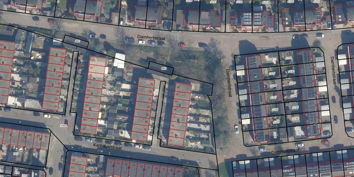 Het perceel waarop Karbouwstraat 84 staat heeft een oppervlakte van 5330 m². Dit is een zeer groot perceel. De perceeloppervlakte wordt geregistreerd door het Kadaster. Gedetailleerde informatie over de maten van dit perceel kunt u vinden in het rapport Kadastrale kaart met maatvoering van Karbouwstraat 84.