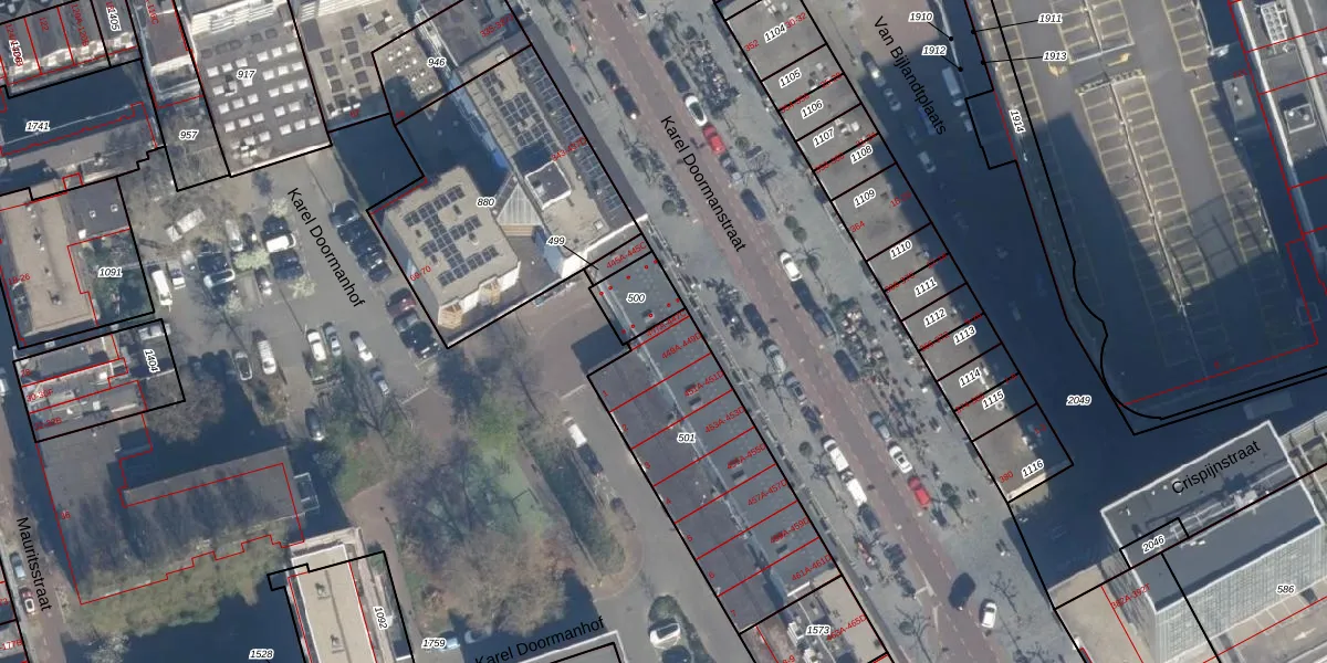 Karel Doormanstraat 447-B is gelegen op kadastraal perceel RTD04AF501. Deze kadastrale aanduiding is uniek en wordt gebruikt door het Kadaster om eigendomsrechten en andere zakelijke rechten vast te leggen. Het perceel maakt onderdeel uit van de kadastrale gemeente Rotterdam.