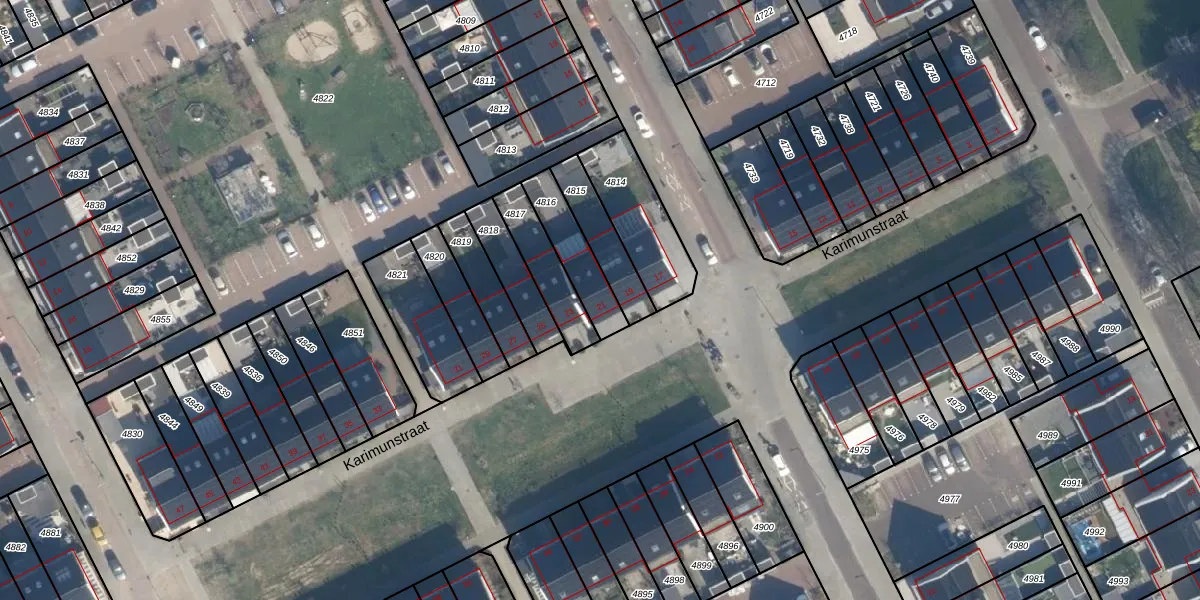 Karimunstraat 21 is gelegen op kadastraal perceel CLS00A4816. Deze kadastrale aanduiding is uniek en wordt gebruikt door het Kadaster om eigendomsrechten en andere zakelijke rechten vast te leggen. Het perceel maakt onderdeel uit van de kadastrale gemeente Charlois.