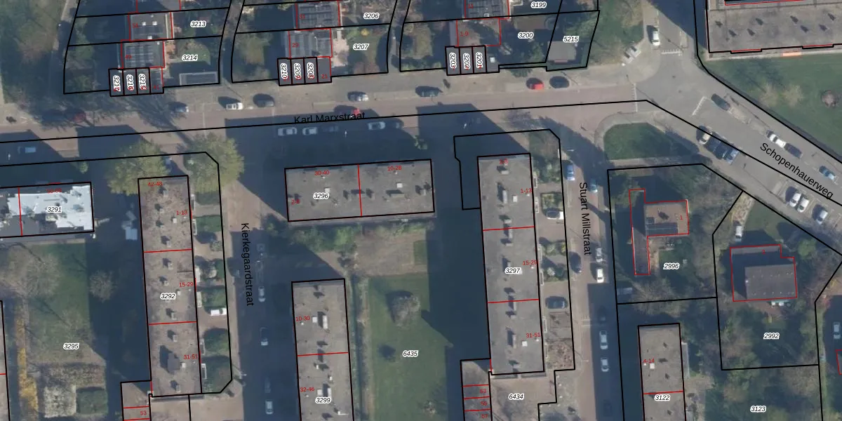 Het perceel waarop Karl Marxstraat 16 staat heeft een oppervlakte van 435 m². Dit is een groot perceel. De perceeloppervlakte wordt geregistreerd door het Kadaster. Gedetailleerde informatie over de maten van dit perceel kunt u vinden in het rapport Kadastrale kaart met maatvoering van Karl Marxstraat 16.