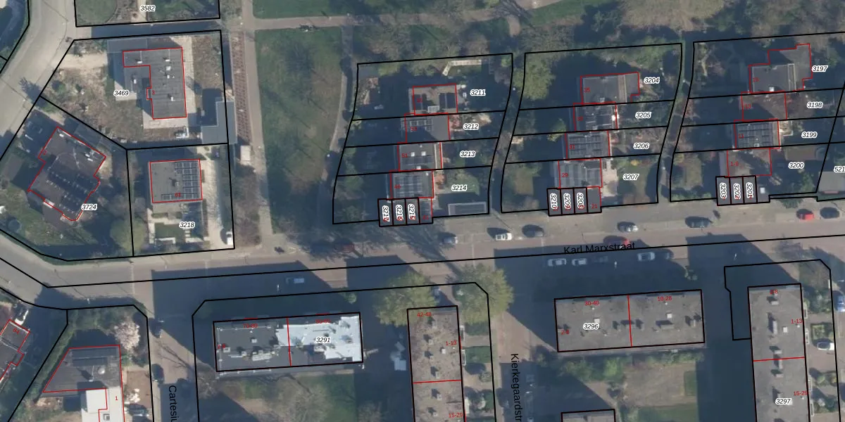 Het perceel waarop Karl Marxstraat 41 staat heeft een oppervlakte van 383 m². Dit is een groot perceel. De perceeloppervlakte wordt geregistreerd door het Kadaster. Gedetailleerde informatie over de maten van dit perceel kunt u vinden in het rapport Kadastrale kaart met maatvoering van Karl Marxstraat 41.