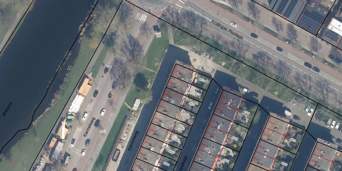 Karmelweg 2-A is gelegen op kadastraal perceel RTD07R6577. Deze kadastrale aanduiding is uniek en wordt gebruikt door het Kadaster om eigendomsrechten en andere zakelijke rechten vast te leggen. Het perceel maakt onderdeel uit van de kadastrale gemeente Rotterdam.