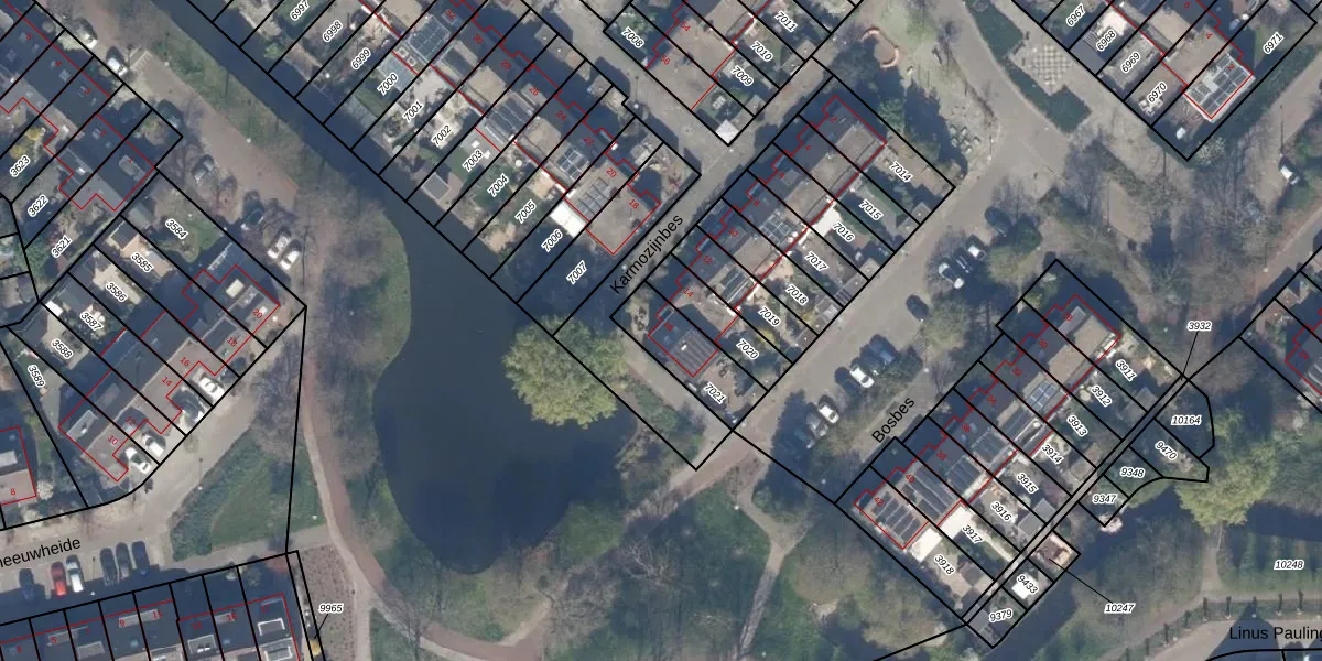 Het perceel waarop Karmozijnbes 16 staat heeft een oppervlakte van 196 m². Dit is een middelgroot perceel. De perceeloppervlakte wordt geregistreerd door het Kadaster. Gedetailleerde informatie over de maten van dit perceel kunt u vinden in het rapport Kadastrale kaart met maatvoering van Karmozijnbes 16.