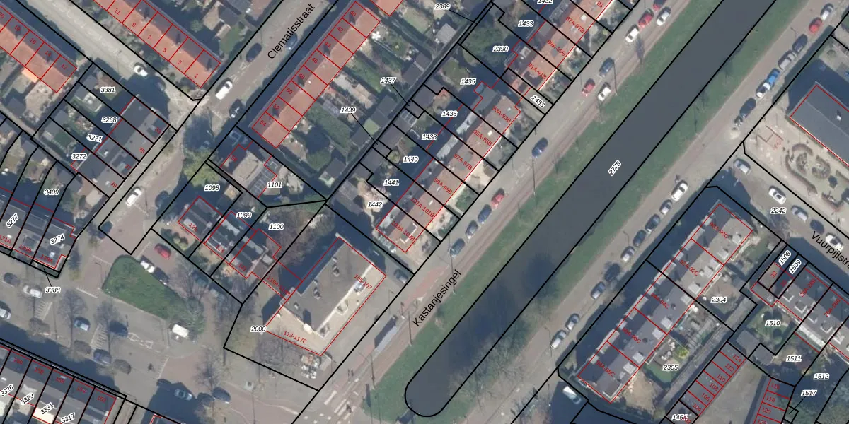 Kastanjesingel 101-B is gelegen op kadastraal perceel SBK01C1441. Deze kadastrale aanduiding is uniek en wordt gebruikt door het Kadaster om eigendomsrechten en andere zakelijke rechten vast te leggen. Het perceel maakt onderdeel uit van de kadastrale gemeente Schiebroek.