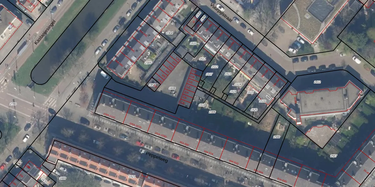 Kastanjesingel 124 is gelegen op kadastraal perceel SBK01C1608. Deze kadastrale aanduiding is uniek en wordt gebruikt door het Kadaster om eigendomsrechten en andere zakelijke rechten vast te leggen. Het perceel maakt onderdeel uit van de kadastrale gemeente Schiebroek.
