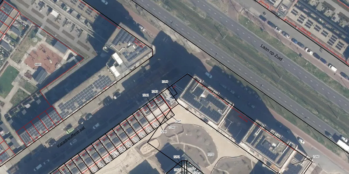 Katadreuffestraat 4 is gelegen op kadastraal perceel RTD05Q7250. Deze kadastrale aanduiding is uniek en wordt gebruikt door het Kadaster om eigendomsrechten en andere zakelijke rechten vast te leggen. Het perceel maakt onderdeel uit van de kadastrale gemeente Rotterdam.
