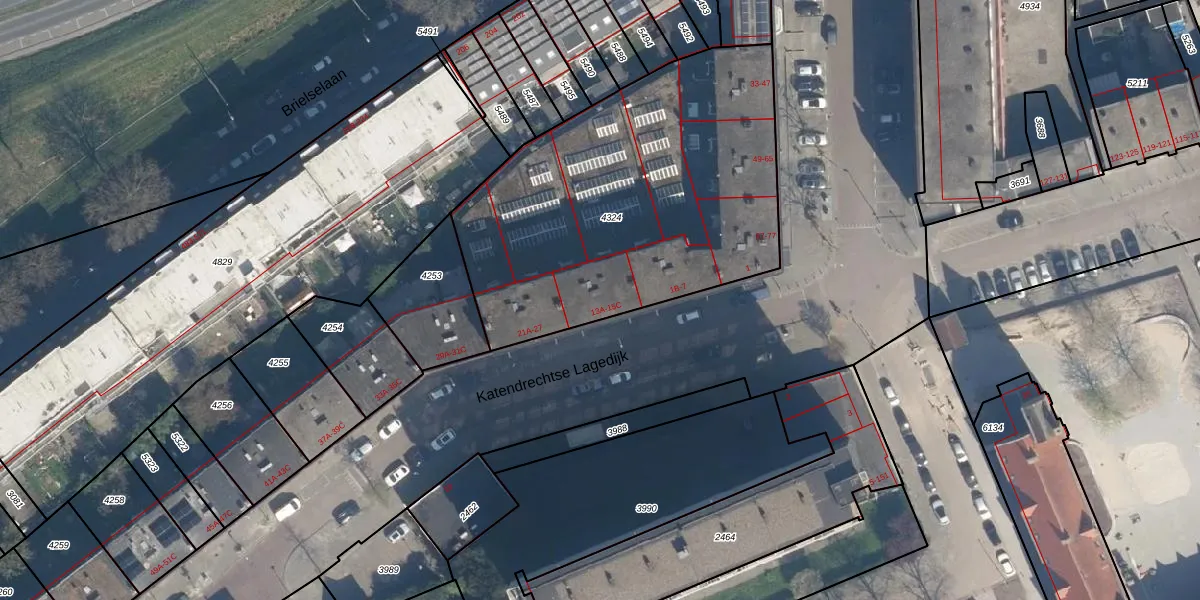 Katendrechtse Lagedijk 13-A is gelegen op kadastraal perceel CLS00E4324. Deze kadastrale aanduiding is uniek en wordt gebruikt door het Kadaster om eigendomsrechten en andere zakelijke rechten vast te leggen. Het perceel maakt onderdeel uit van de kadastrale gemeente Charlois.