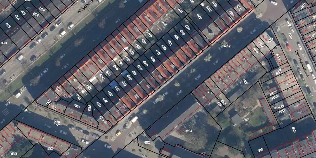 Het adres is gelegen op perceel 3636 in de sectie E en de kadastrale gemeente Charlois. De kadastrale aanduiding is aldus CLS00-E-3636. Het perceel is 114 m² groot. Dat is kleiner dan de gemiddelde perceeloppervlakte in Charlois, dat op 1147,24 m² ligt. De grootste perceeloppervlakte in de kadastrale gemeente is 1,09 km². De kleinste oppervlakte bedraagt 0 m². Op het perceel zijn 3 adressen aanwezig. De huidige grenzen van het perceel zijn digitaal in de Basisregistratie Kadaster (BRK) geregistreerd op 10-06-2003.