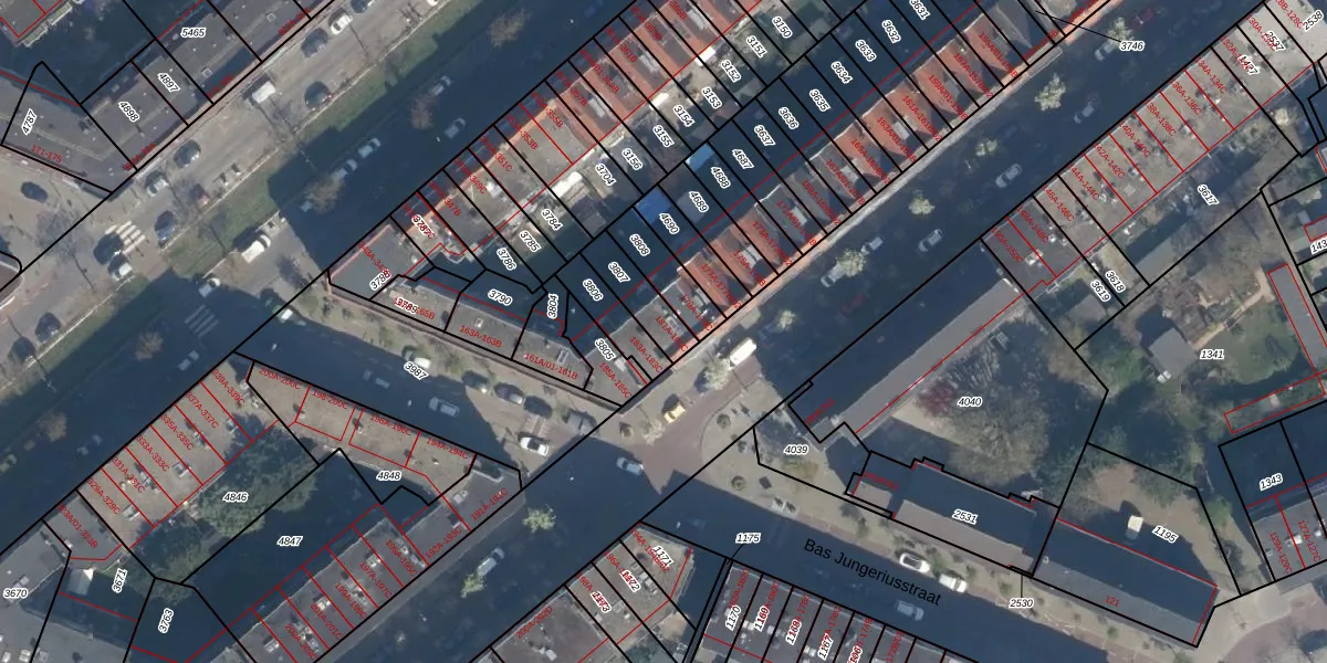 Het adres is gelegen op perceel 3807 in de sectie E en de kadastrale gemeente Charlois. De kadastrale aanduiding is aldus CLS00-E-3807. Het perceel is 111 m² groot. Dat is kleiner dan de gemiddelde perceeloppervlakte in Charlois, dat op 1147,69 m² ligt. De grootste perceeloppervlakte in de kadastrale gemeente is 1,09 km². De kleinste oppervlakte bedraagt 0 m². Er zijn 3 adressen aanwezig op het perceel. De huidige grenzen van het perceel zijn digitaal in de Basisregistratie Kadaster (BRK) geregistreerd op 10-06-2003.