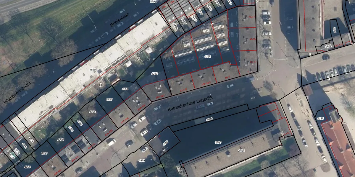Katendrechtse Lagedijk 23-A is gelegen op kadastraal perceel CLS00E4324. Deze kadastrale aanduiding is uniek en wordt gebruikt door het Kadaster om eigendomsrechten en andere zakelijke rechten vast te leggen. Het perceel maakt onderdeel uit van de kadastrale gemeente Charlois.